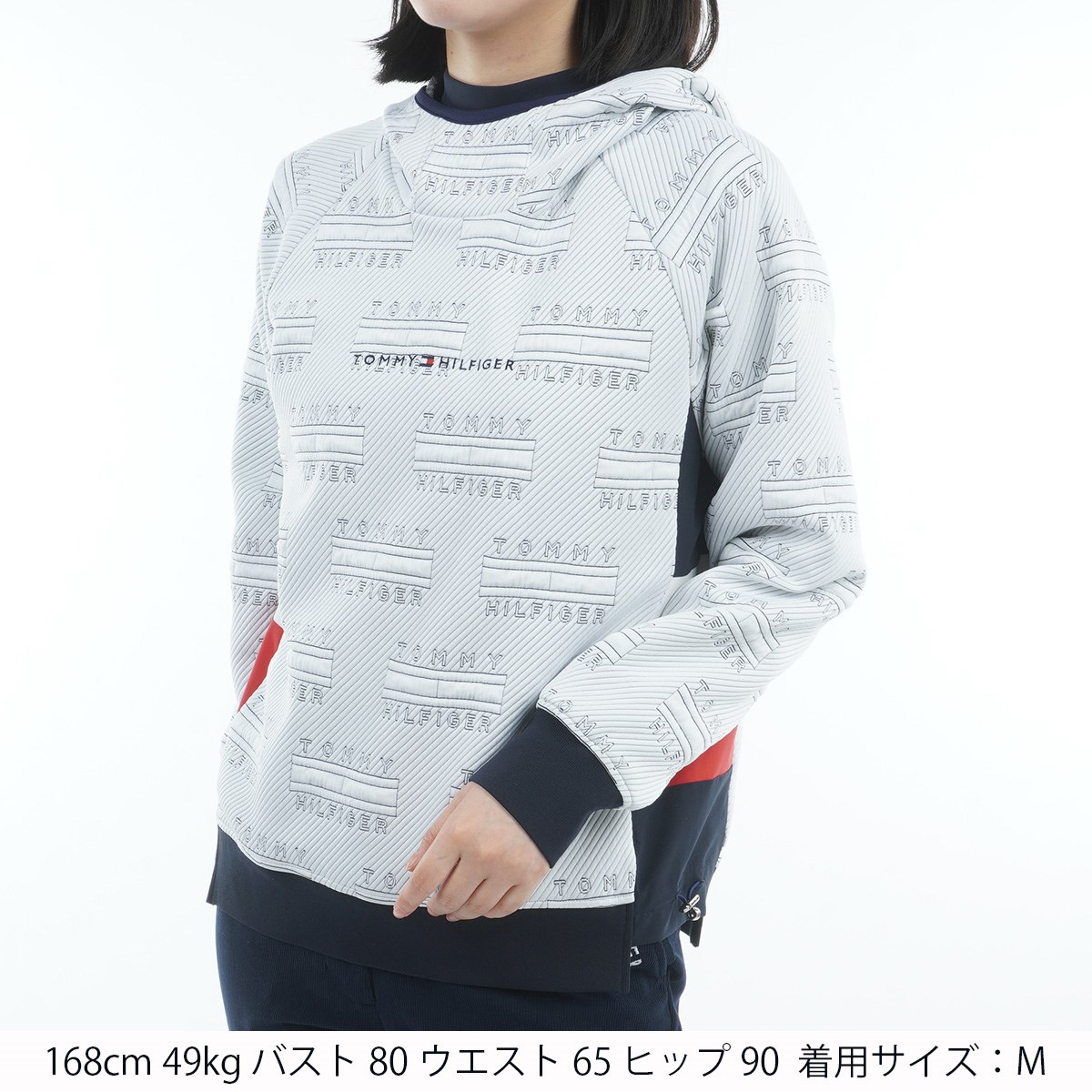 トミー ヒルフィガー ゴルフ TOMMY HILFIGER GOLF ストレッチ キルトジャカード プルオーバーフーディー LL ホワイト レディス