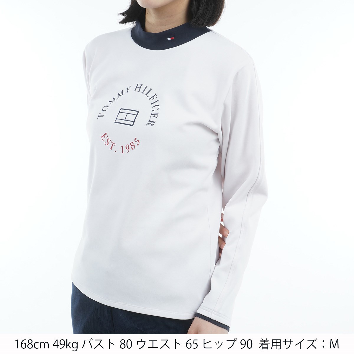 トミー ヒルフィガー ゴルフ TOMMY HILFIGER GOLF 裏起毛 サークルロゴ モックネック長袖シャツ M ホワイト レディス