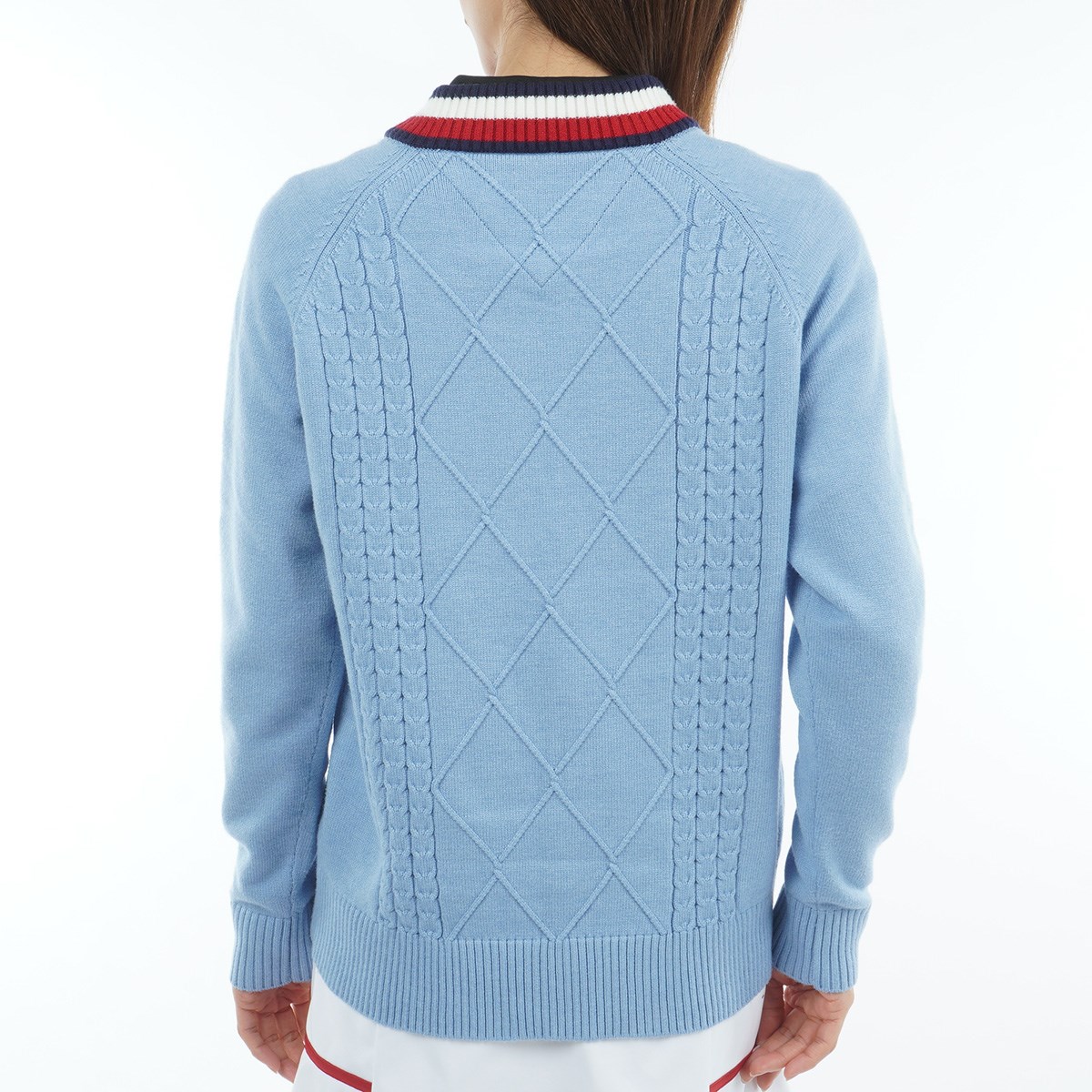 トミー ヒルフィガー ゴルフ TOMMY HILFIGER GOLF マシュマロタッチ ケーブル柄 ハイネックセーター M アイスブルー レディス