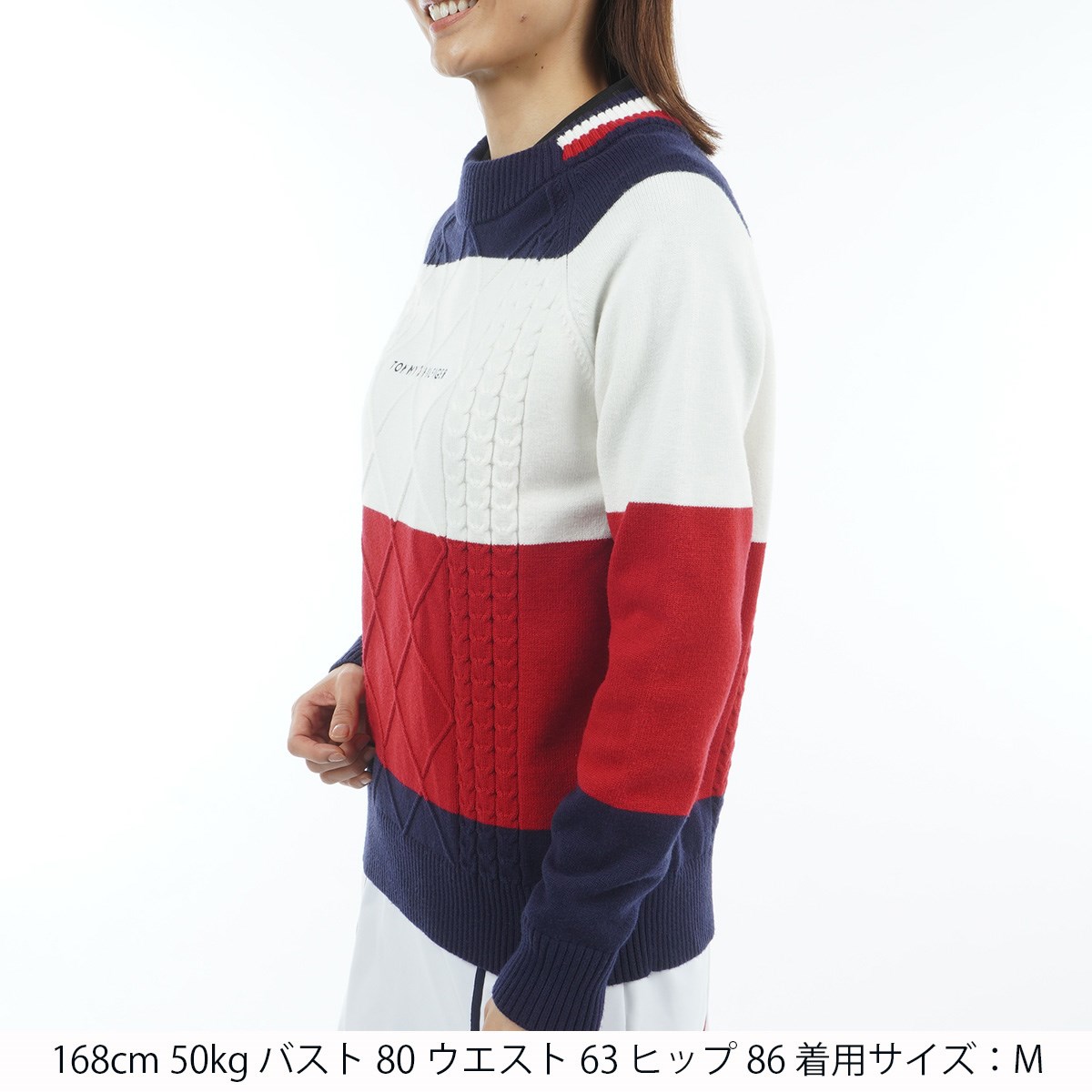 トミー ヒルフィガー ゴルフ TOMMY HILFIGER GOLF マシュマロタッチ ケーブル柄 ハイネックセーター LL トリコロール レディス