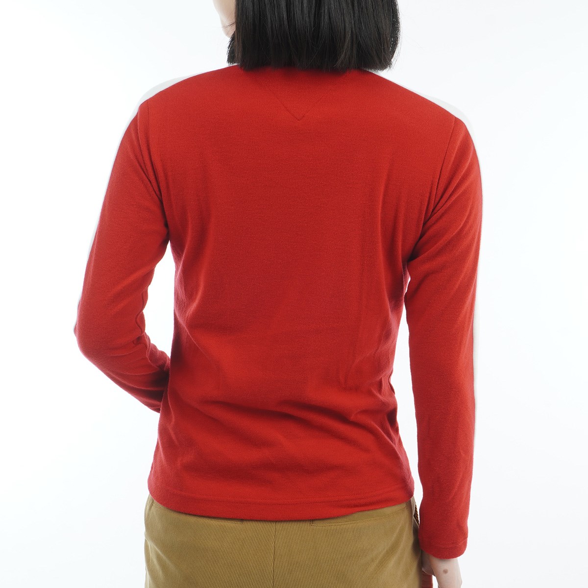 トミー ヒルフィガー ゴルフ TOMMY HILFIGER GOLF ストレッチ モックネック長袖ラインシャツ M レッド レディス