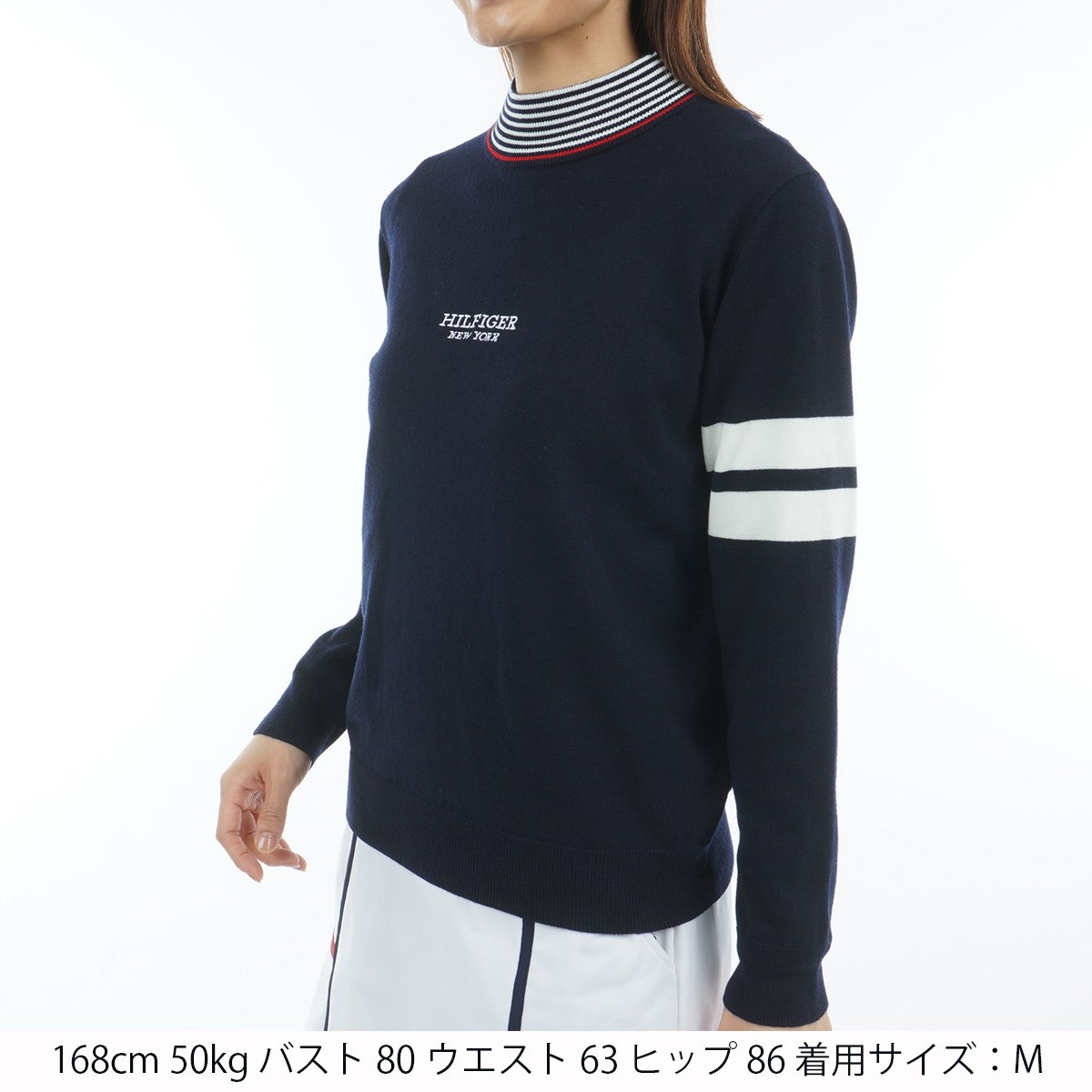 トミー ヒルフィガー ゴルフ TOMMY HILFIGER GOLF ボーダー ハイネックセーター M ネイビー レディス