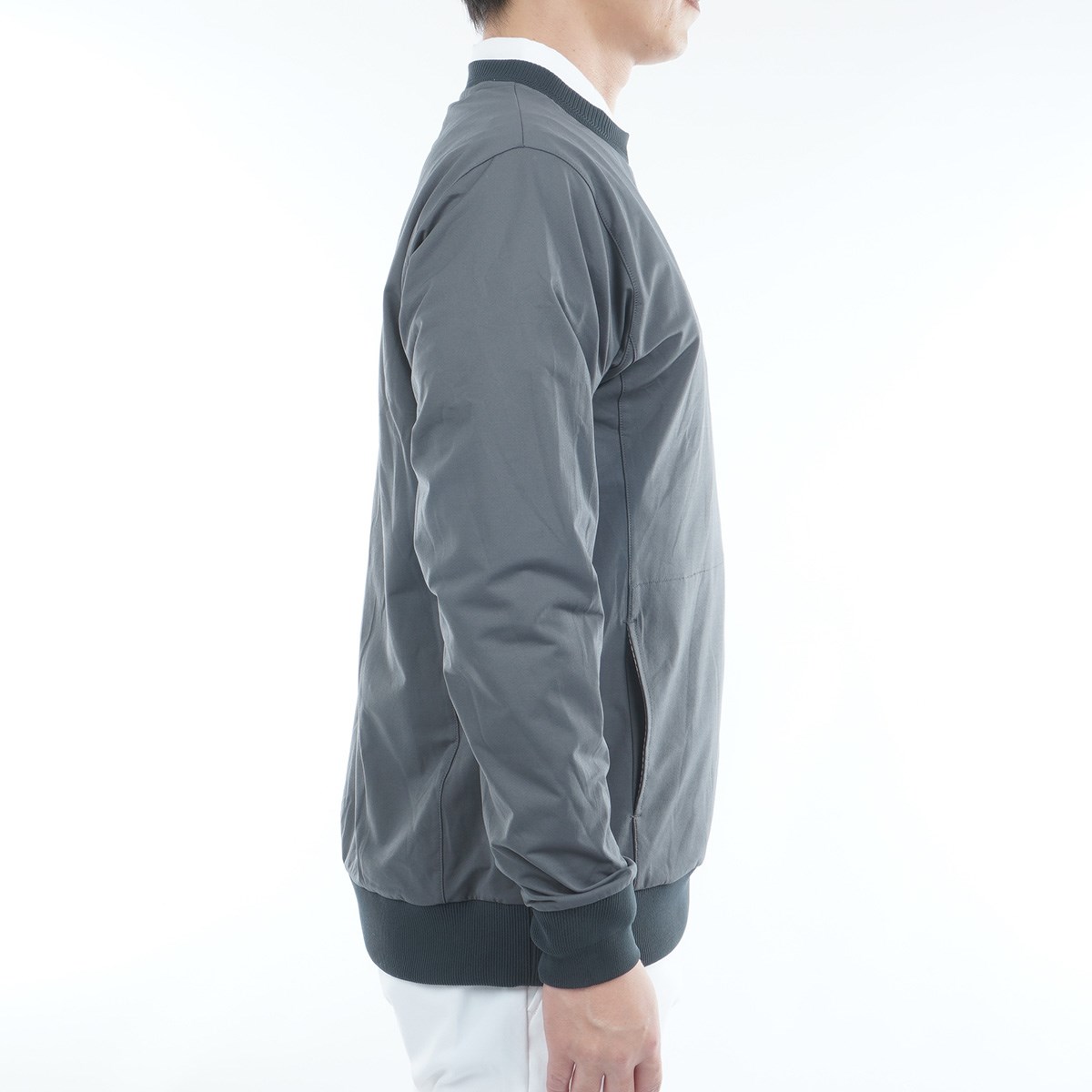 高捲縮加工糸と緻密な編み構造により、防風性を備えた軽量ニット素材「スペクター」を使用したクルーネックスウェット。