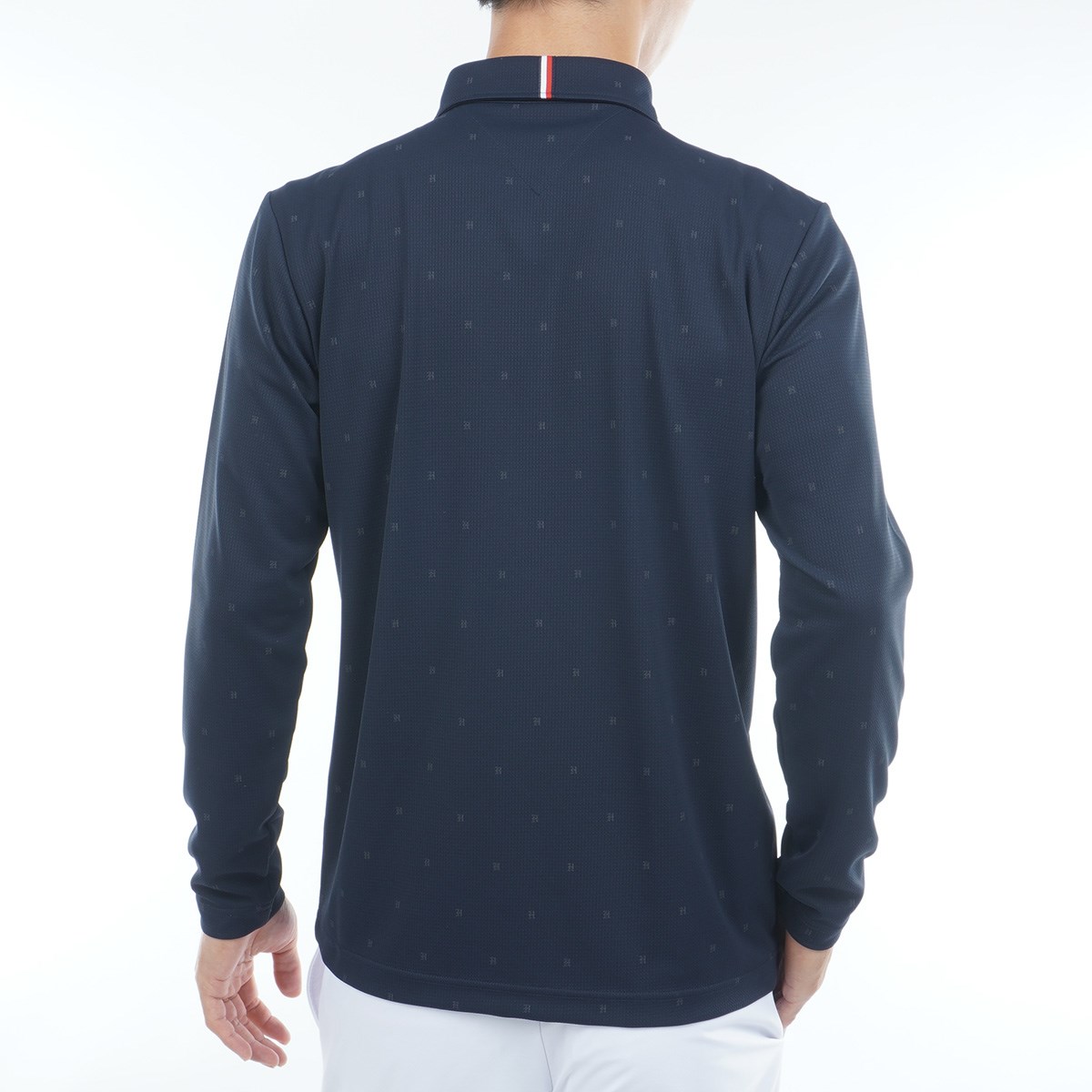 トミー ヒルフィガー ゴルフ TOMMY HILFIGER GOLF ロゴ 台衿付き長袖ポロシャツ LL ネイビー
