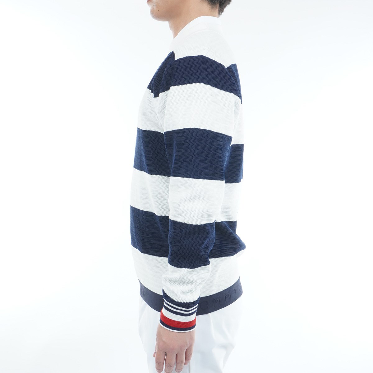 トミー ヒルフィガー ゴルフ TOMMY HILFIGER GOLF ボーダー クルーネックセーター 3L ホワイト