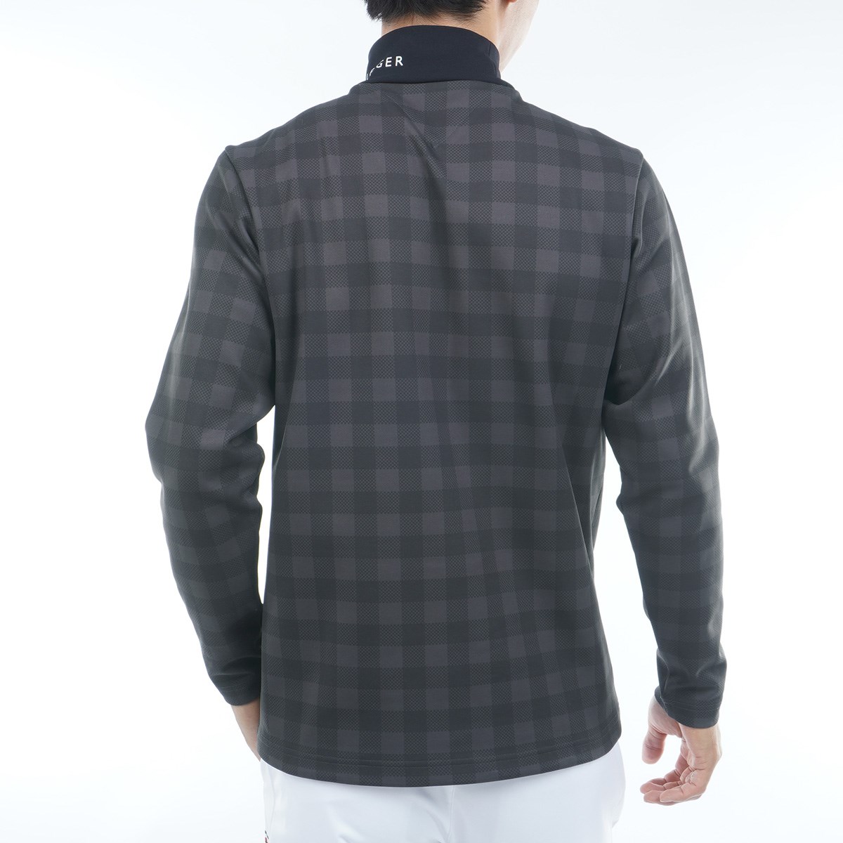 トミー ヒルフィガー ゴルフ TOMMY HILFIGER GOLF ストレッチ 裏起毛 チェック柄 ハイネック長袖シャツ L ブラック