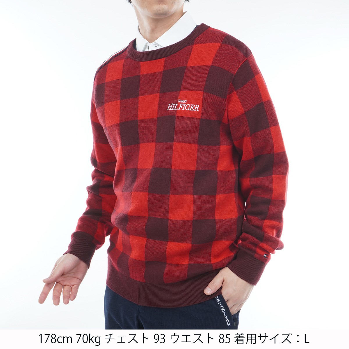 トミー ヒルフィガー ゴルフ TOMMY HILFIGER GOLF チェックジャカード クルーネックセーター L レッド