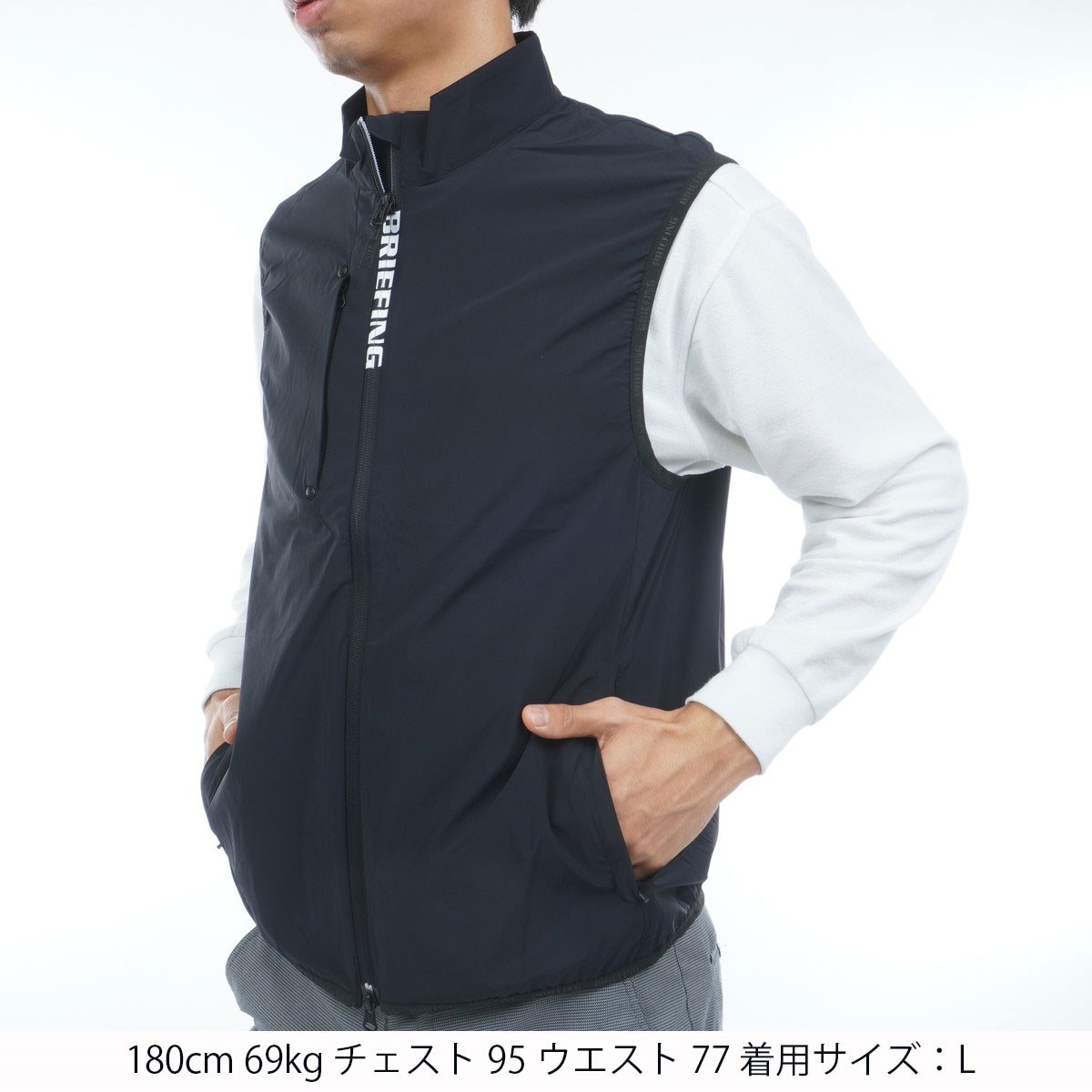 ブリーフィング BRIEFING ストレッチ ポケッタブルウインド ベスト L ブラック 010