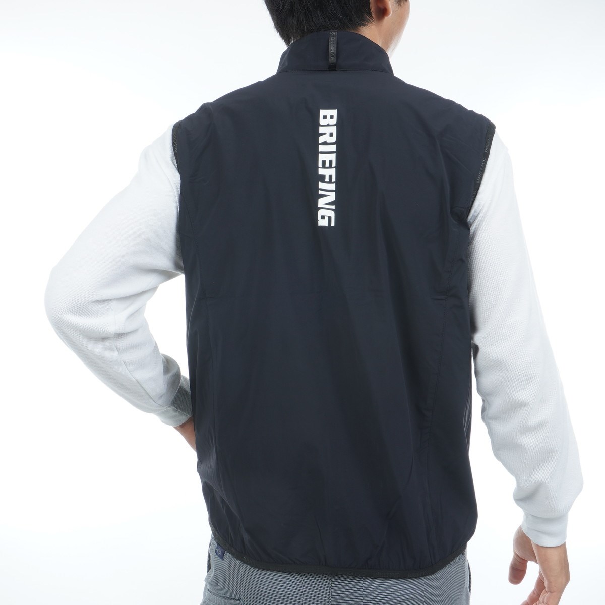 ・背面には大胆にBRIEFINGロゴのプリントを配置。