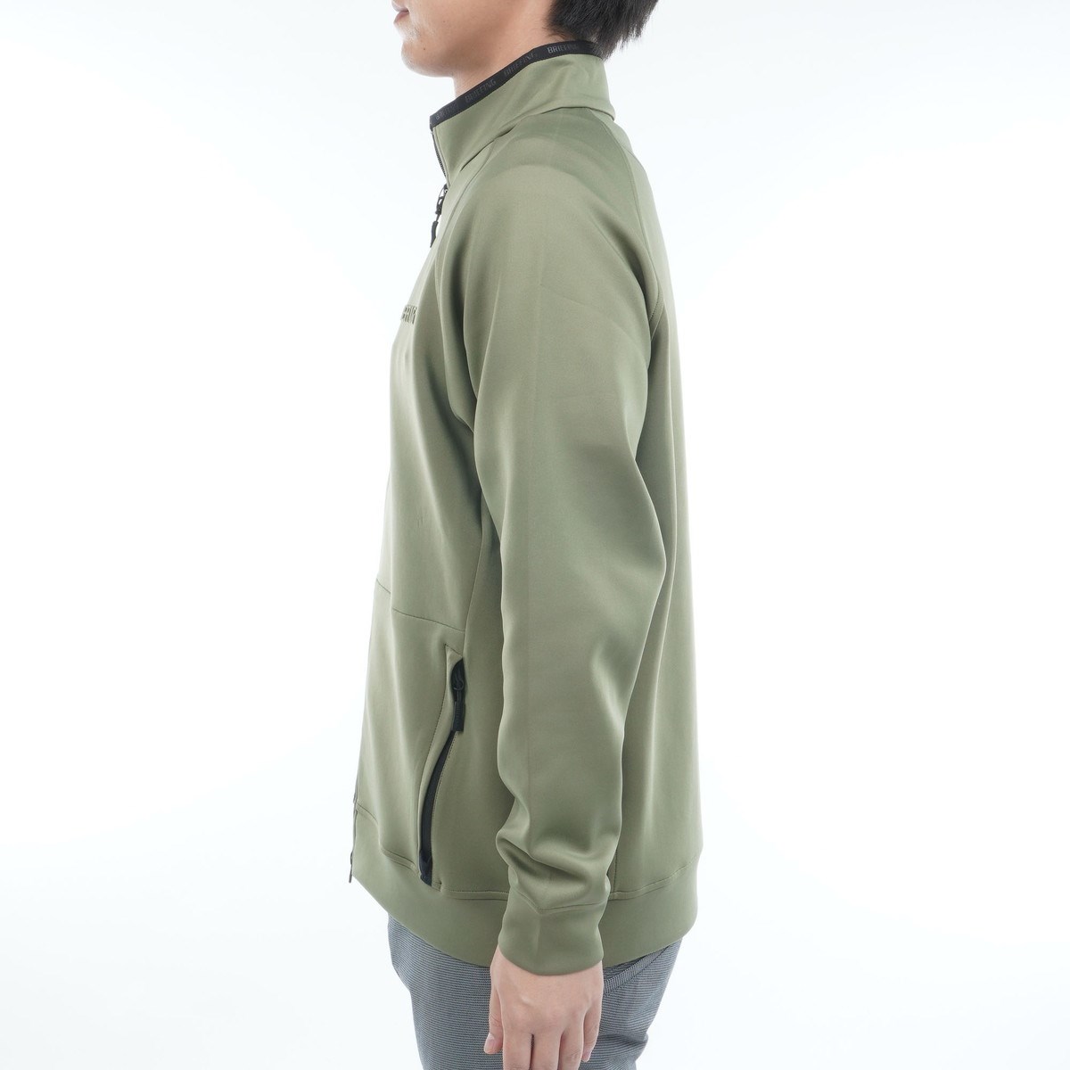 ・首元はハイネックデザインを採用し、ジップを上まで閉めることで冷たい風の侵入を防ぎます。