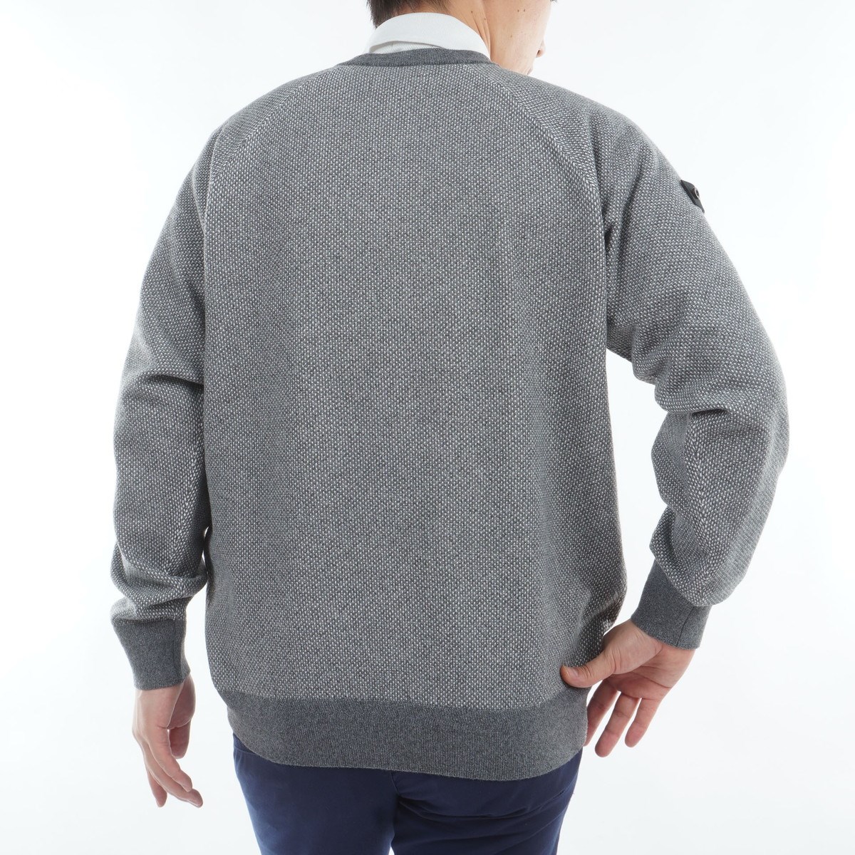 1枚着としてはもちろん、アウターと合わせた際もバーズアイパターンがアクセントとなり、コーディネートを格上げしてくれる1着。