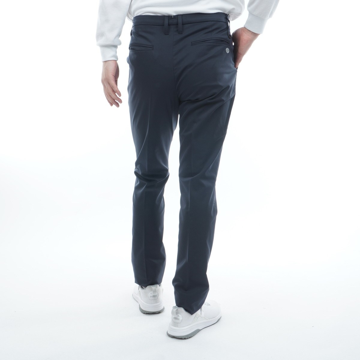 伸縮性に優れた耐久撥水素材を用いたスラックスパンツは、ゴルフなどの野外でのタフな使用に最適。
