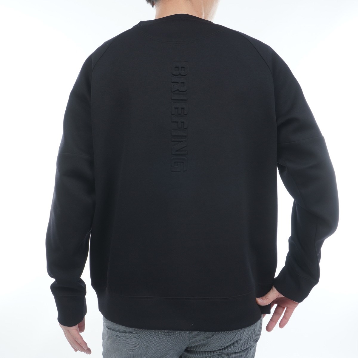 背面のエンボスロゴや両肩に配したエンボスロゴ入りテープなどBRIEFING GOLFのアイコニックなデザインを随所に落とし込んだクルーネックトップス。