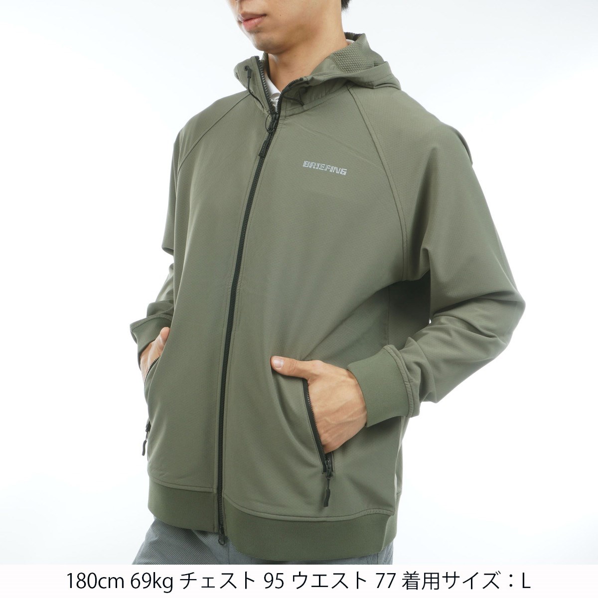ブリーフィング BRIEFING ストレッチ 裏起毛 ストームフリース BACK DOTS パーカー XL オリーブ 067