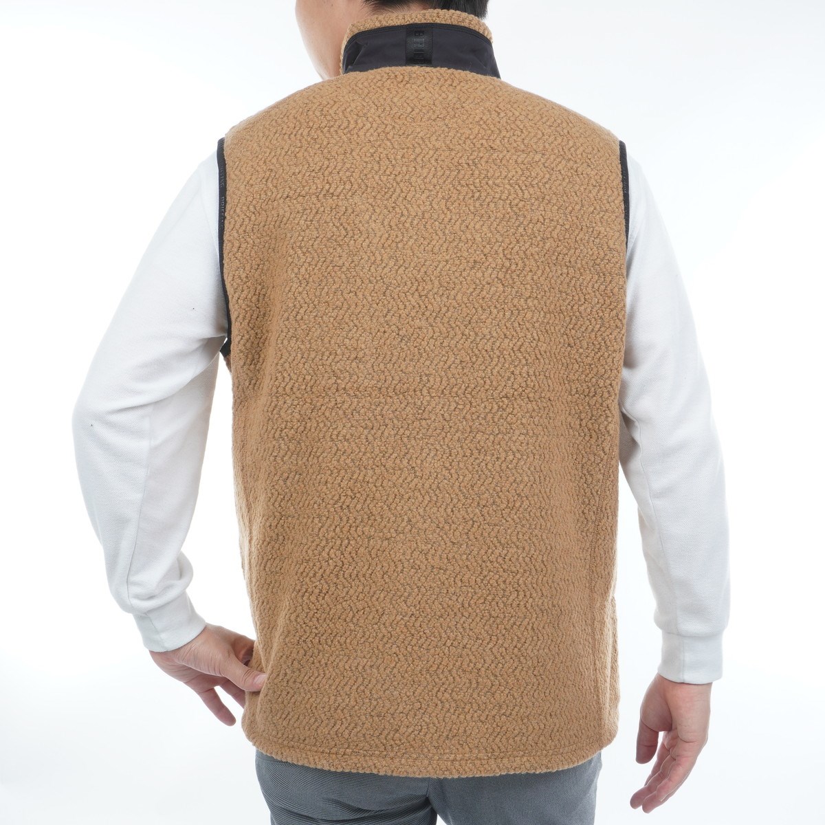 スポーティーな印象のジップアップベストをウールボアフリースで仕立てることで、上品さを演出。