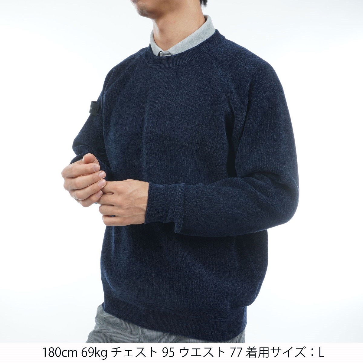 ブリーフィング BRIEFING モールヤーン ロゴ クルーネック セーター L ネイビー 076