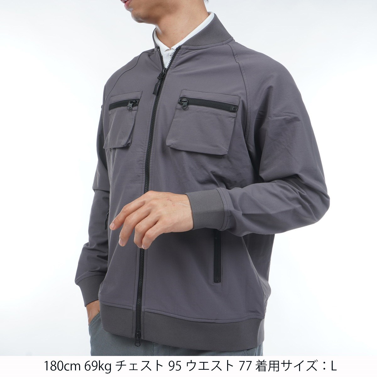 フロントに配したポケットのアクセントが目を引くブルゾンは、いつもの装いにプラスしただけで着こなしが決まる、コーディネートの主役におすすめな1着。