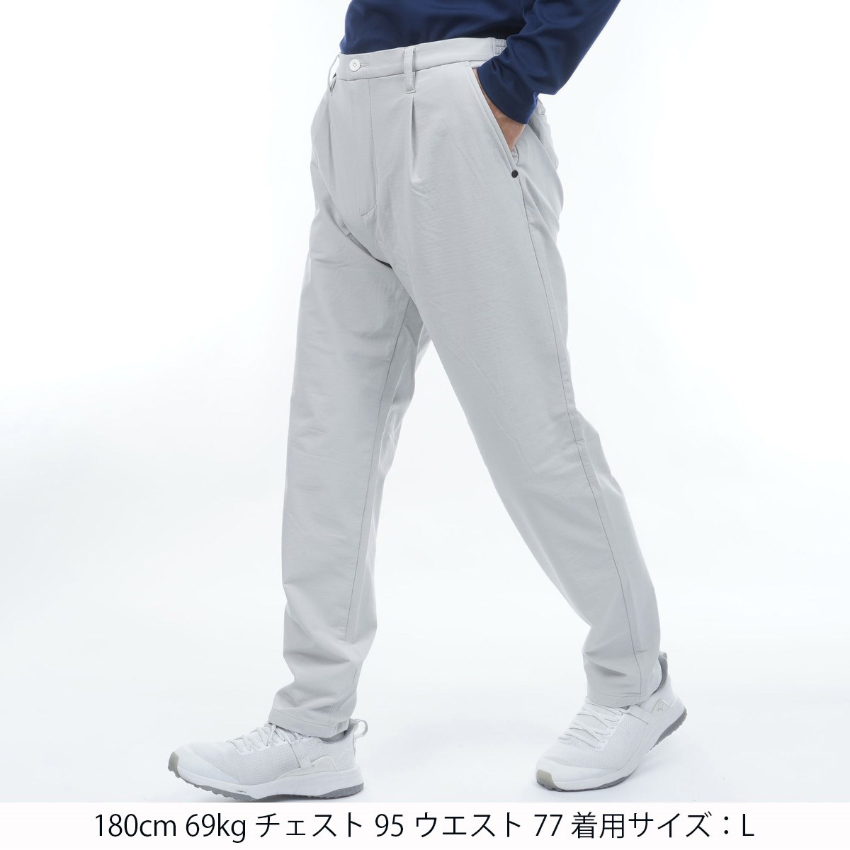 裾に向かってやや細くなるワイドテーパードシルエットが、快適な着用感とほっそりとしたレッグラインを実現します。