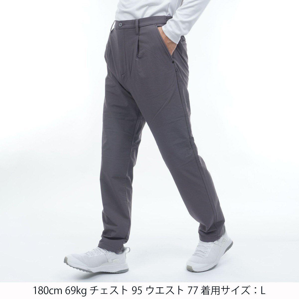 裾に向かってやや細くなるワイドテーパードシルエットが、快適な着用感とほっそりとしたレッグラインを実現します。