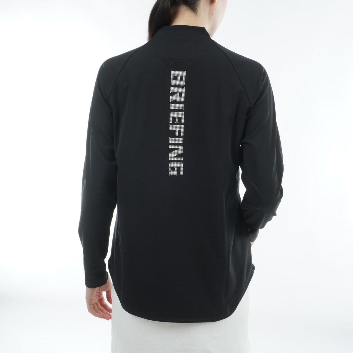 フロントとバックのBRIEFINGロゴが目を引く、ハイネックの長袖シャツです。