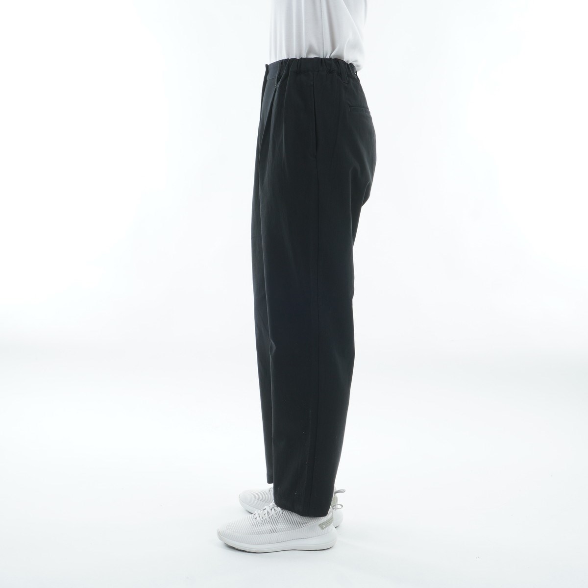 ・程よいゆとりを持ちながらも、レッグラインをすっきり見せるワイドテーパードシルエット。