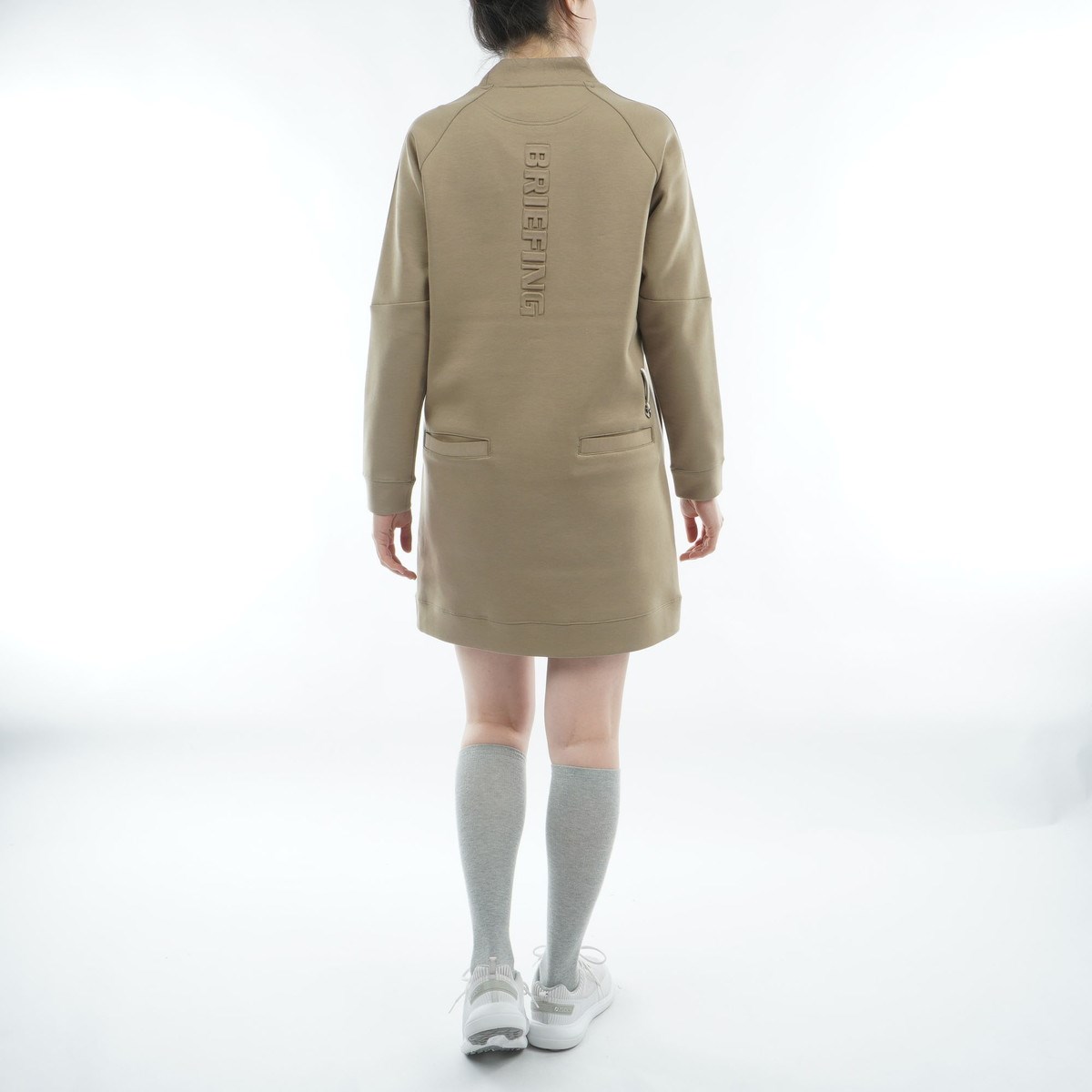 背面のエンボスロゴや両肩に配したエンボスロゴ入りテープなどBRIEFING GOLFのアイコニックなデザインを随所に落とし込んだハイネックワンピース。