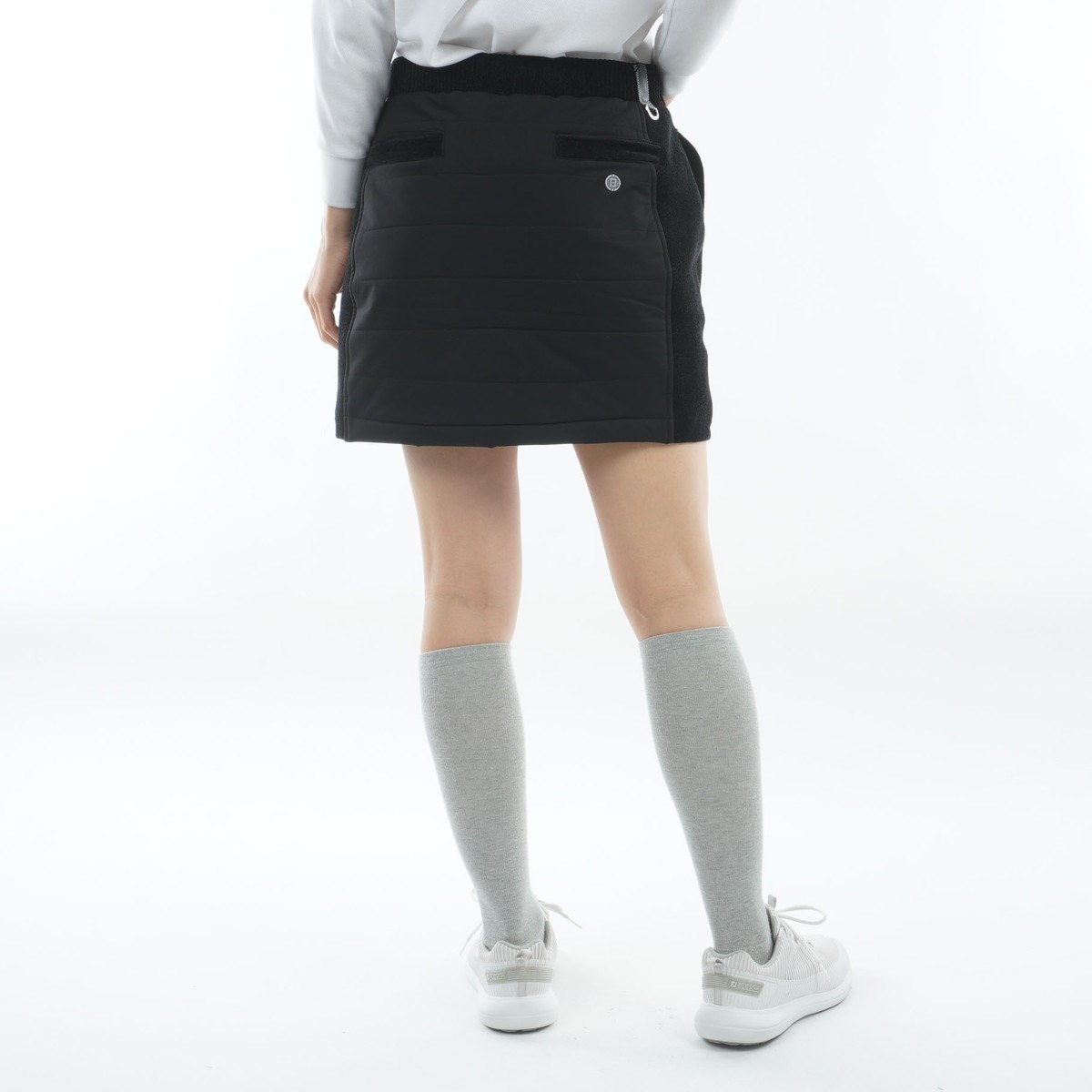 スポーティーな雰囲気のキルトスカートにベロアのような光沢と柔らかな凹凸感あるモールヤーンを部分使いすることで、ラグジュアリーな雰囲気を演出する、大人のGOLFウェアに仕上がりました。