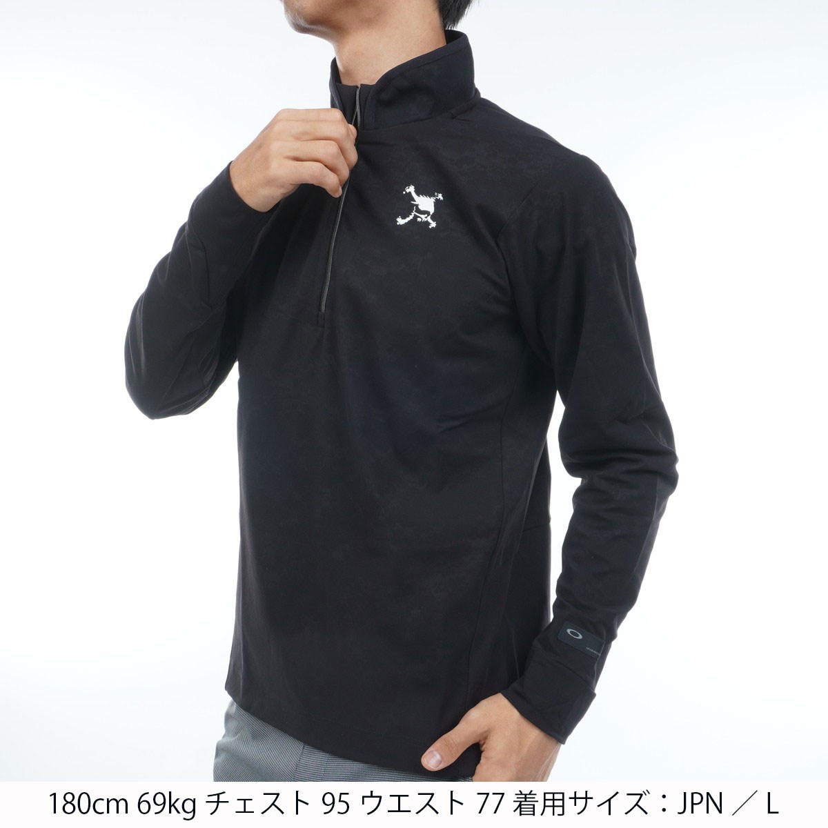 オークリー OAKLEY スカル EMBOSSED モックネック長袖シャツ US・EU/M:JPN/L ブラックアウト 02E FOA408241