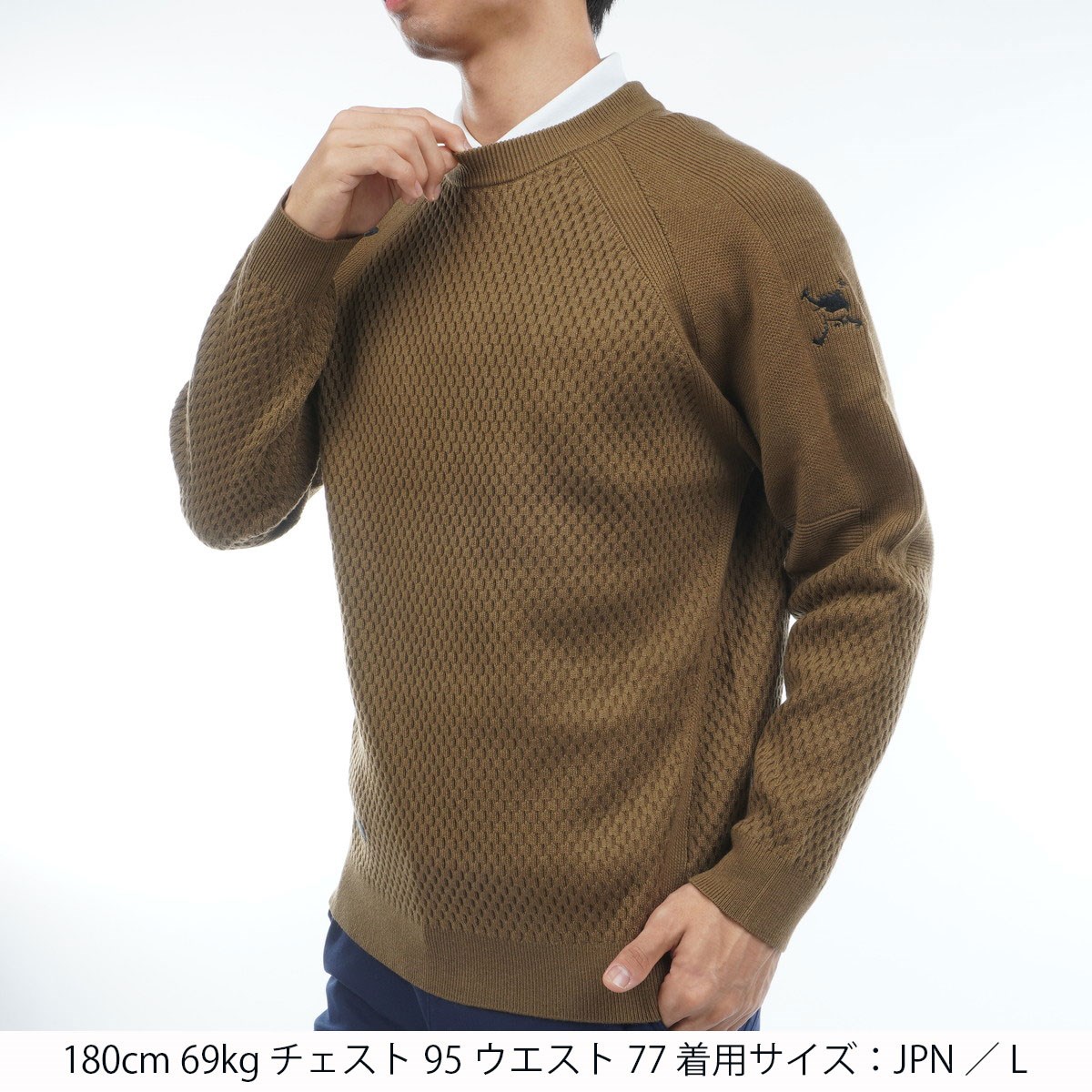 レイヤードのしやすいクルーネックで秋から冬のゴルフで活躍するセーター。