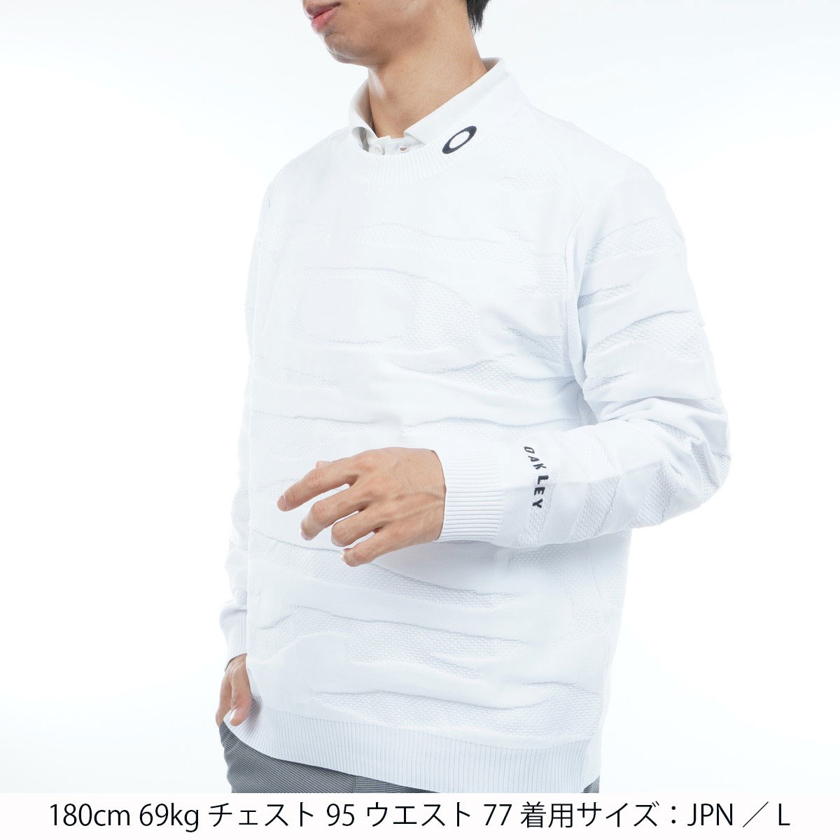 オークリー OAKLEY OAKLEY ストレッチ カモ ジャカード クルーネックセーター US・EU/S:JPN/M ホワイト 100 FOA408271