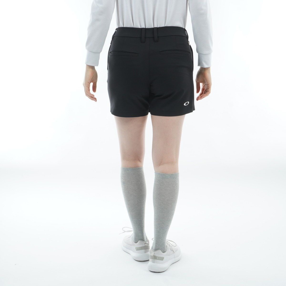 少し長めのショートパンツ丈にアレンジしたキュロットで、左脇の切替と大き目ロゴがスタイルを引き立てる。