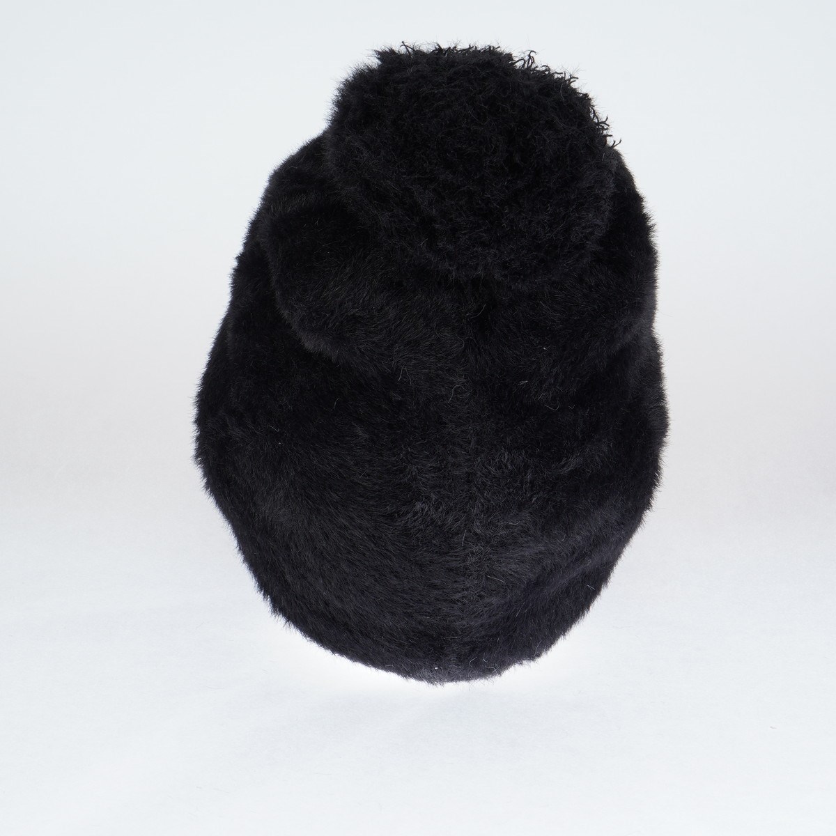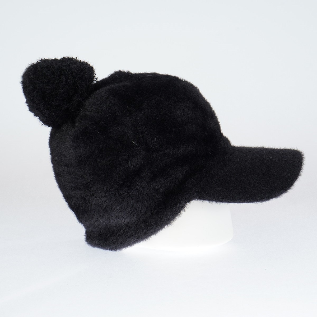 毛足の長い、柔らかな素材を使用したツバ付きビーニーです。