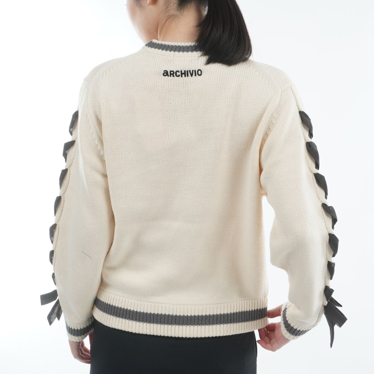 アルチビオ archivio ブレードリボン袖プルオーバーセーター 36 ホワイト 090 レディス