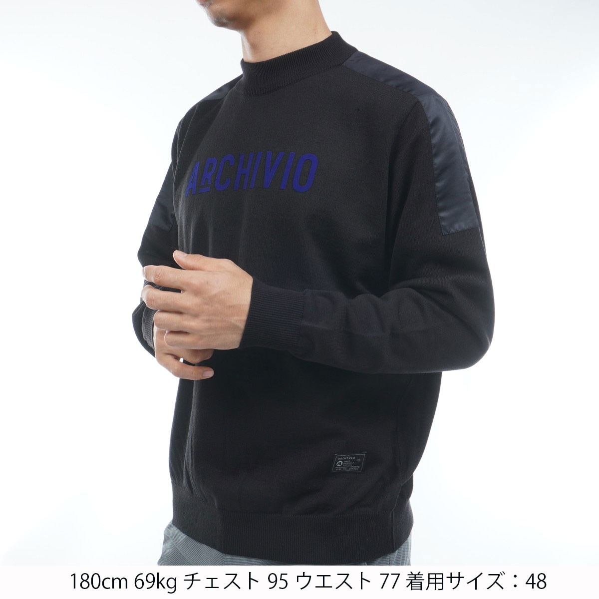 アルチビオ archivio ウール混肩切替ロゴプルオーバーセーター 46 ブラック 001