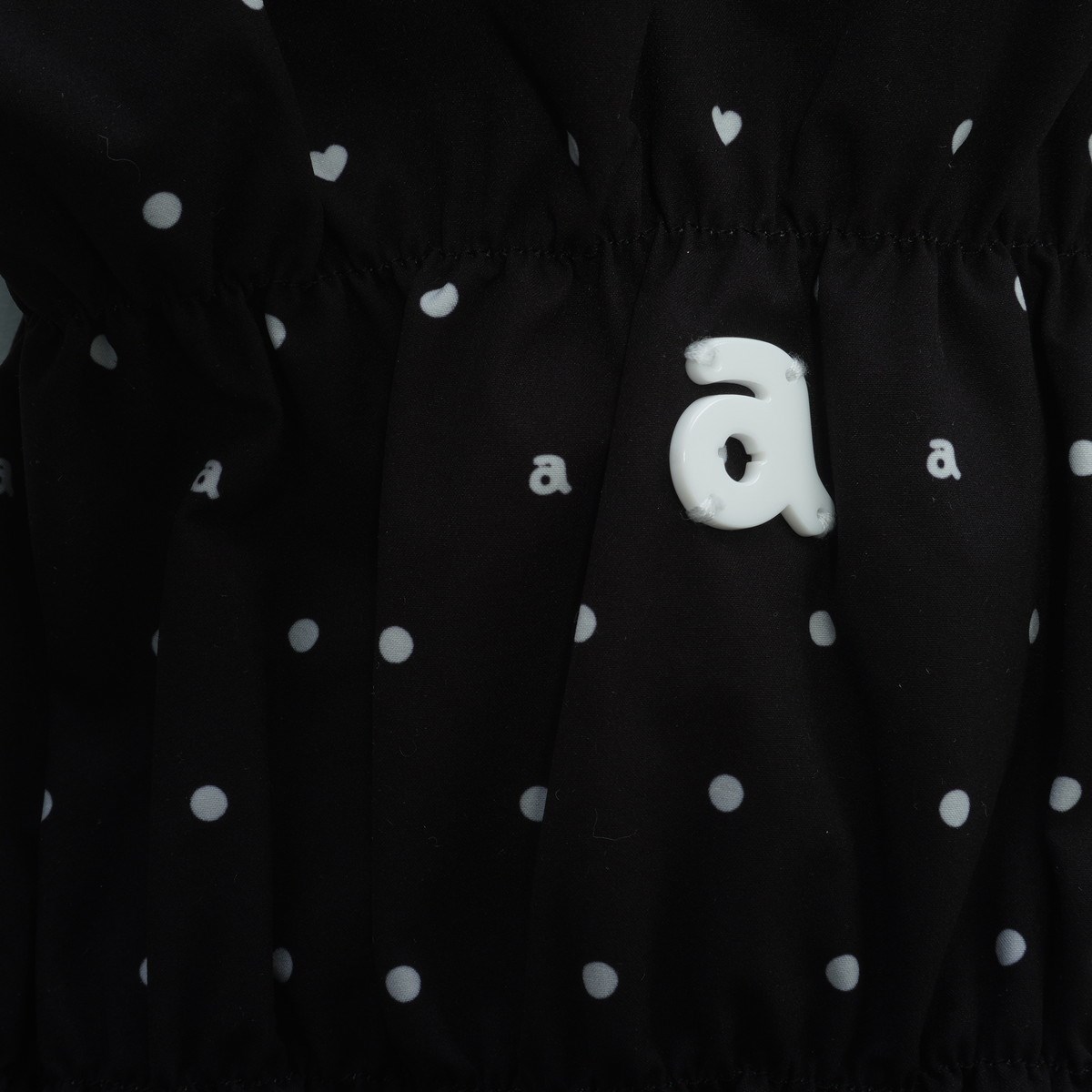 ・ドット柄の中にはさりげなくハートマークやaマークが点在した楽しいデザイン