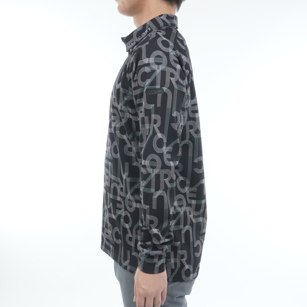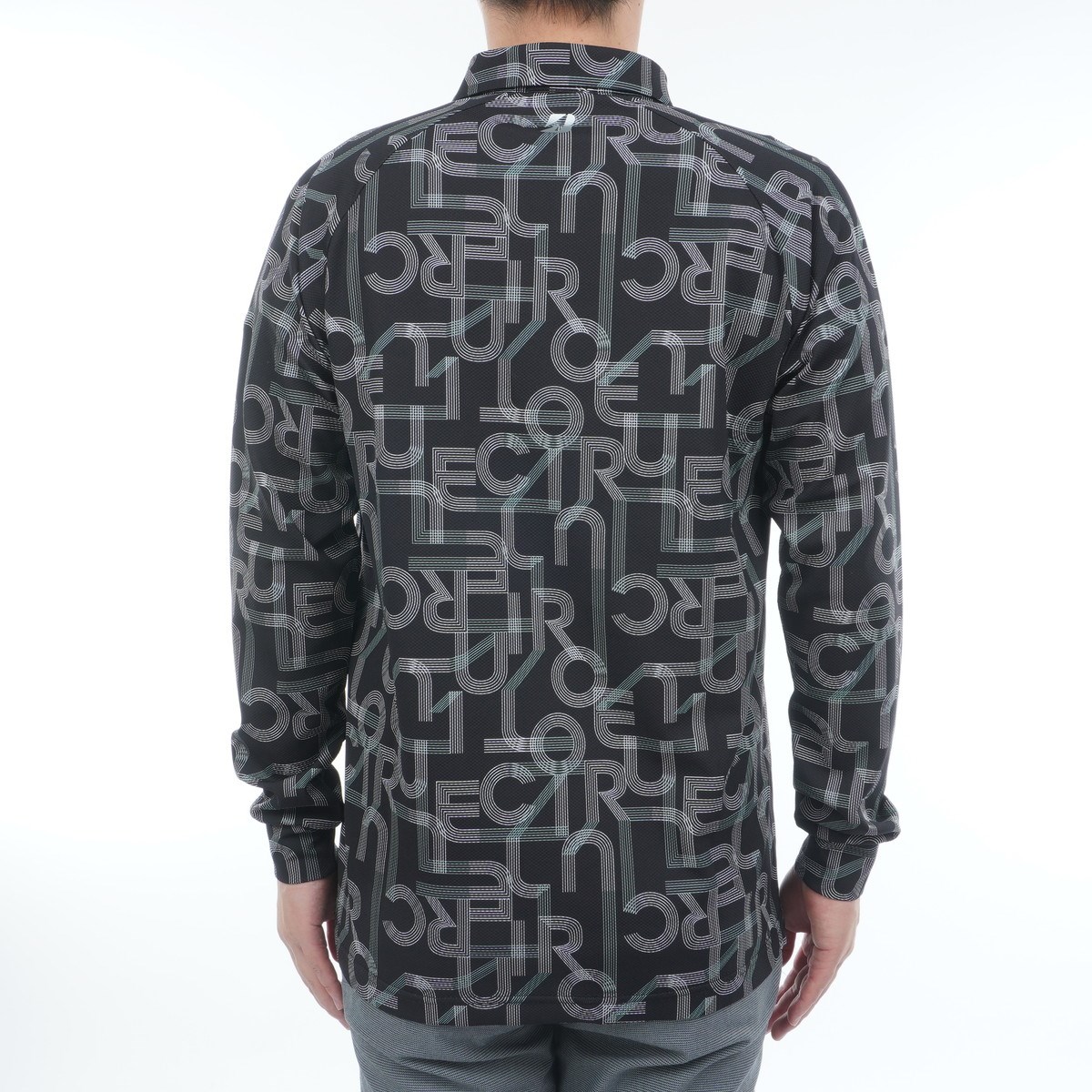 パッと目を引くデザインのタイポ柄の長袖ポロシャツ。