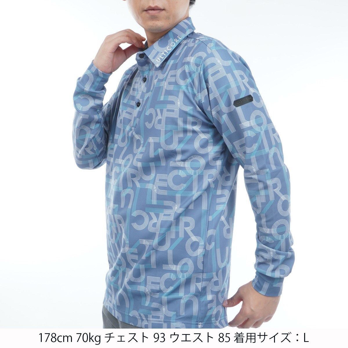 ブリヂストン BRIDGESTONE GOLF ULTICORE 4Dimotion Fit Split ストレッチ ラグランスリーブ 共衿長袖ポロシャツ LL ブルー