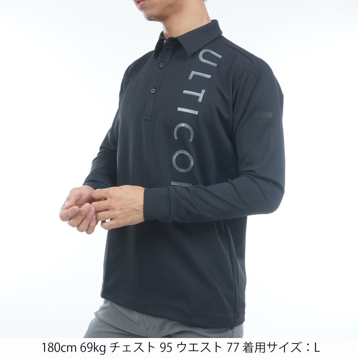 ブリヂストン BRIDGESTONE GOLF ULTICORE 4Dimotion Fit Split ストレッチ ラグランスリーブ 共衿長袖ポロシャツ L ブラック