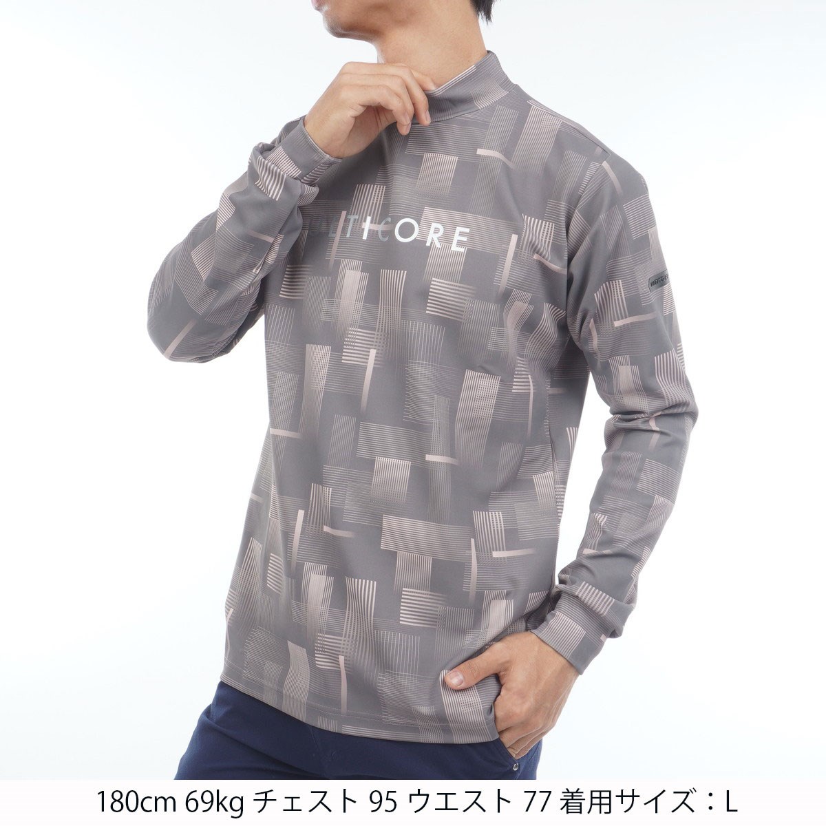 ブリヂストン BRIDGESTONE GOLF ULTICORE 4Dimotion Fit Split ストレッチ ラグランスリーブ モックネック長袖シャツ M グレー