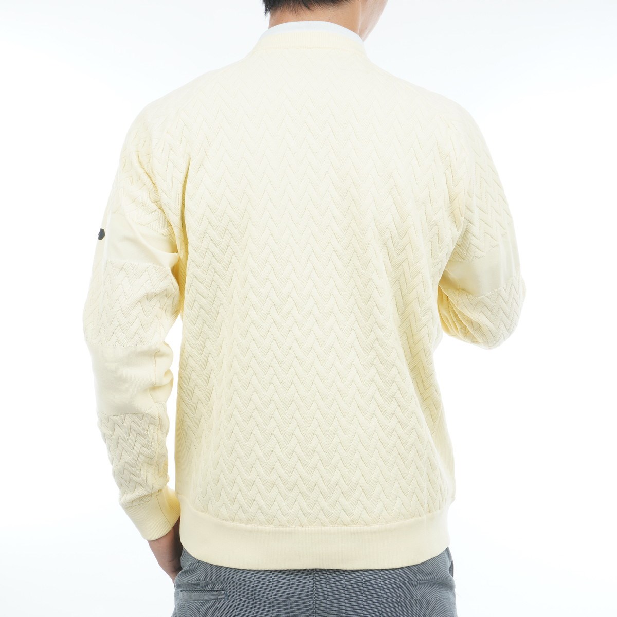 ポリエステルニットで仕立てたスポーツセーター。