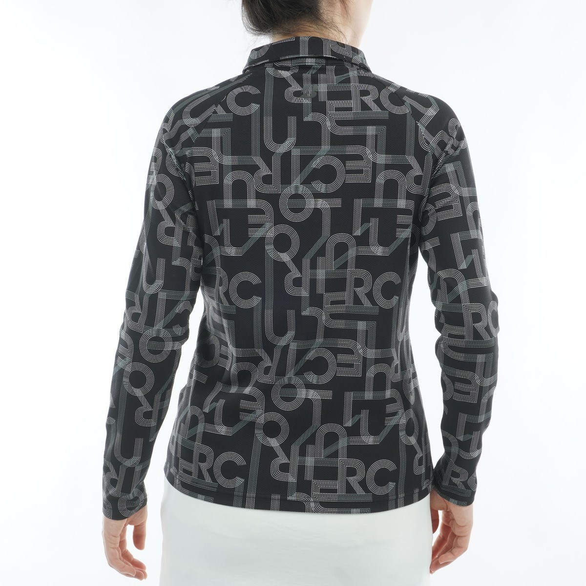 パッと目を引くデザインのタイポ柄の長袖ポロシャツ。