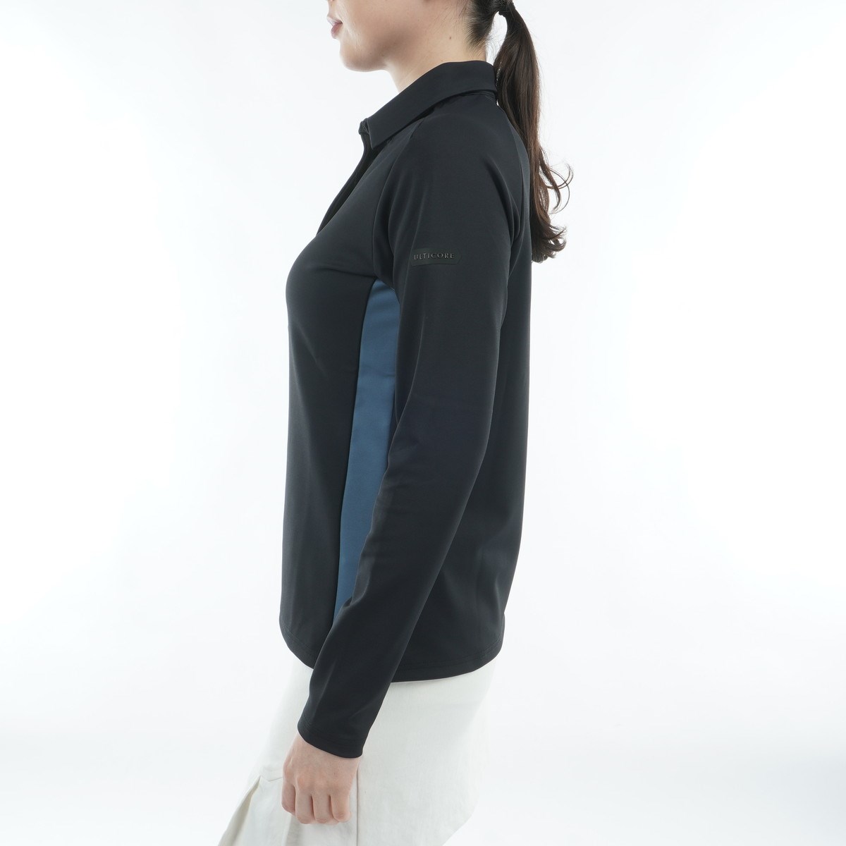 衣服内温度を3℃上げる素材を使用し、4方向に伸縮する高ストレッチの長袖ポロシャツ。