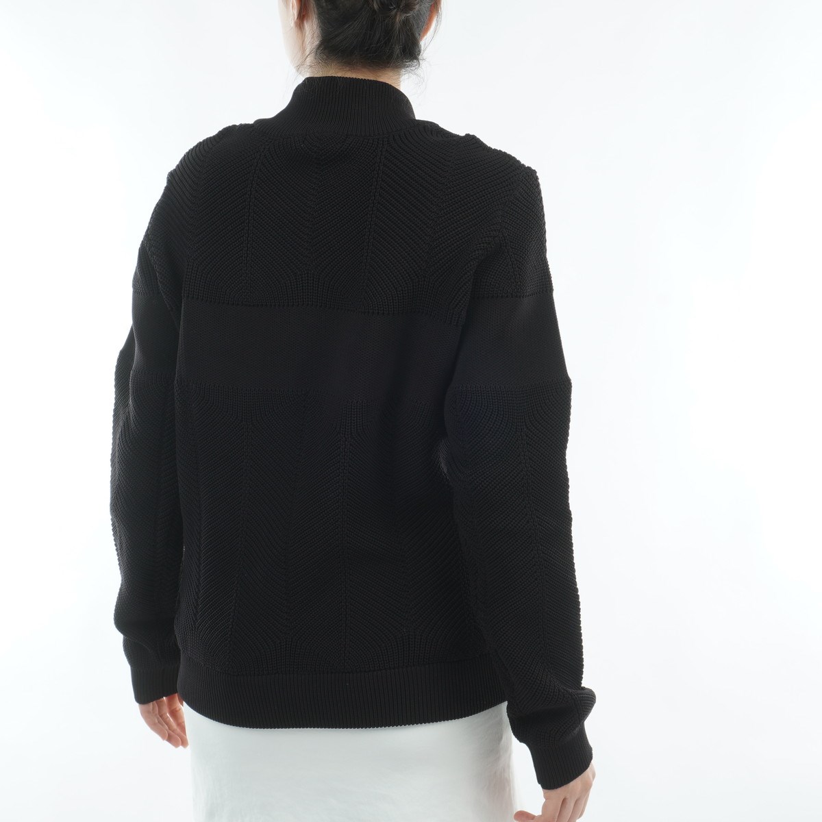ポリエステルニットで仕立てたスポーツセーター。