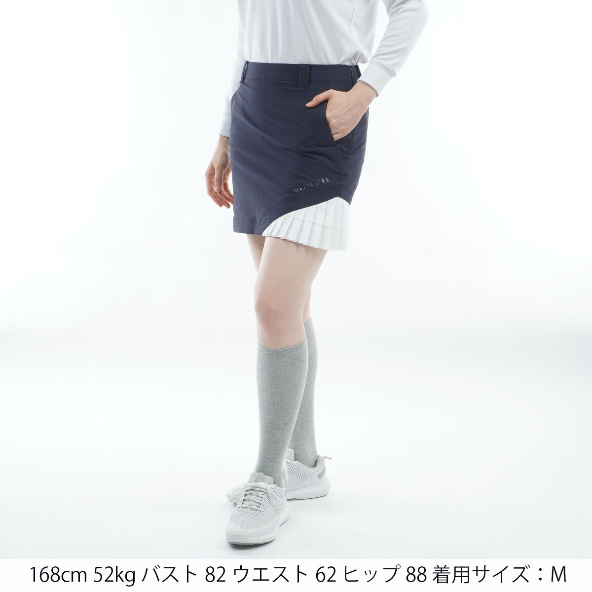 素材本体:ナイロン88%、ポリウレタン12%/プリーツ部分:ポリエステル100%/インナーパンツ:ポリエステル88%、ポリウレタン12%