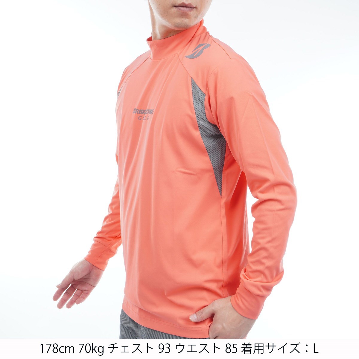 ブリヂストン BRIDGESTONE GOLF B-01 ストレッチ モックネック長袖シャツ LL オレンジ