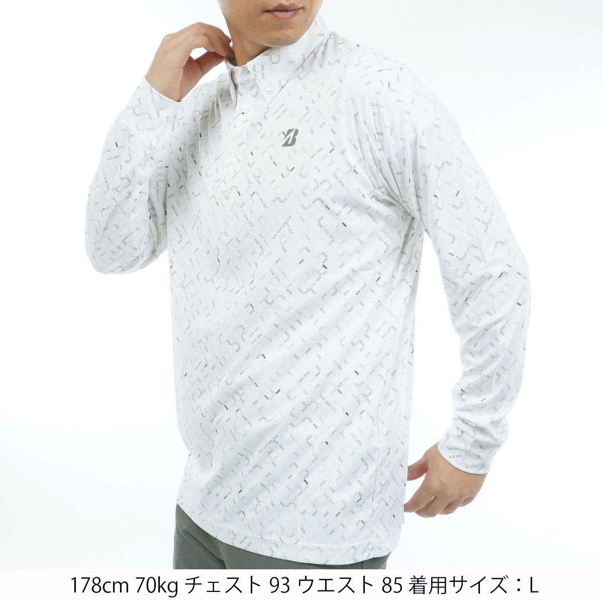 ブリヂストン BRIDGESTONE GOLF B-01 ストレッチ ボタンダウン長袖ポロシャツ L ホワイト