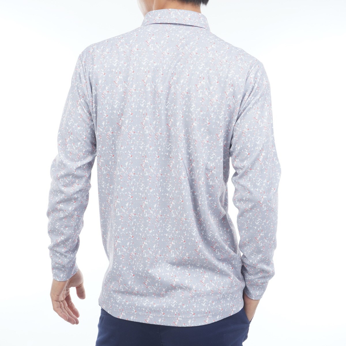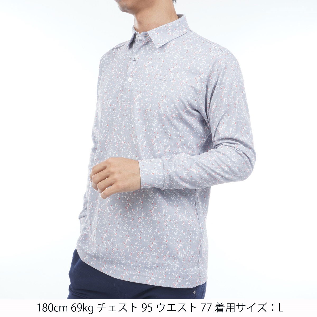 裏起毛のリーフプリント柄の長袖ポロシャツ。