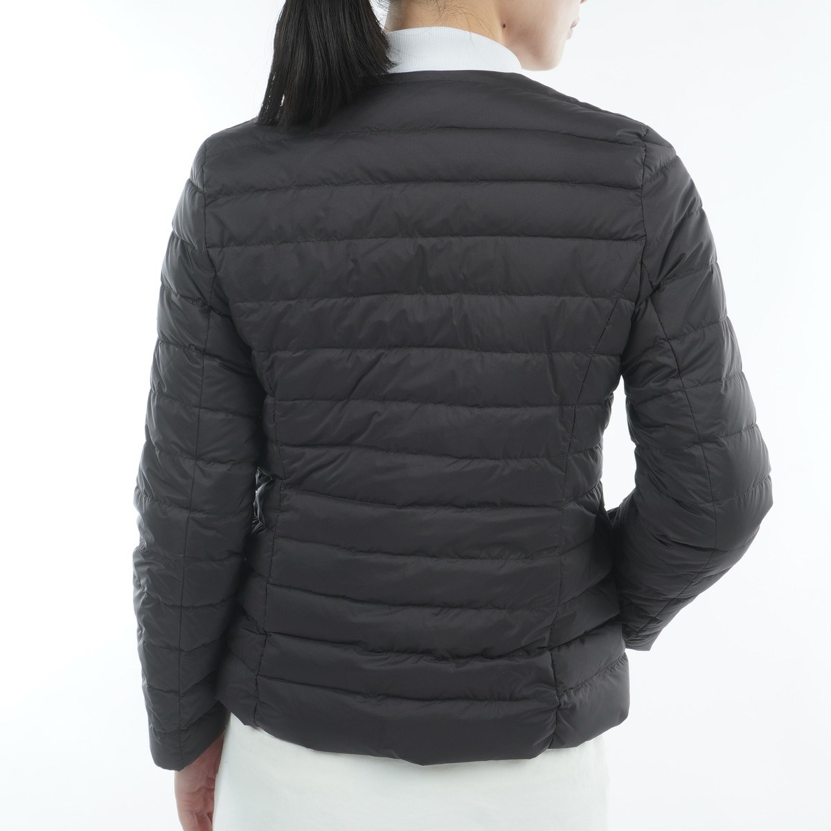 ダウン量は多めながら、やや細身のフィット感とウエストをさりげなく絞ったシルエット、肩の張りを拾わない設計でコンパクトな着用感。
