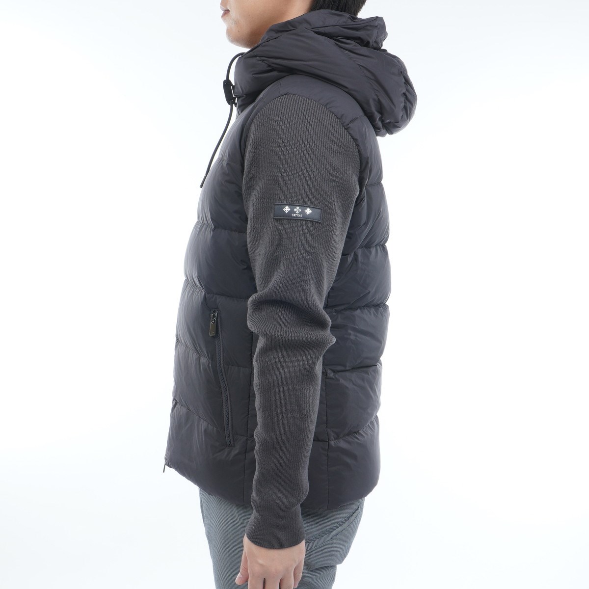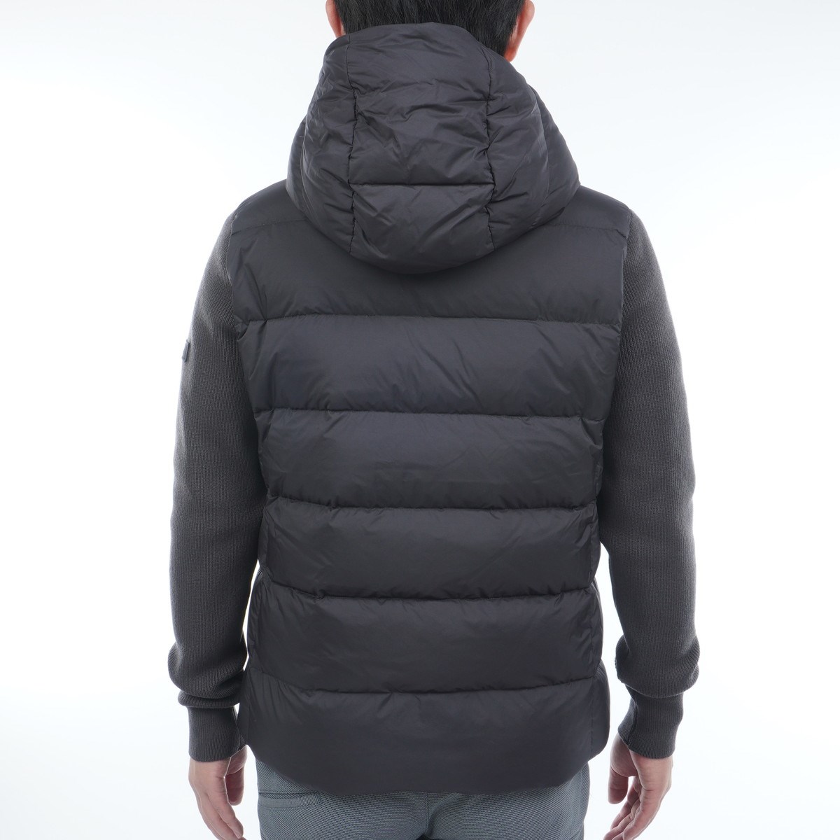 袖パーツを厚手のニットで切り替えたダウンジャケット。