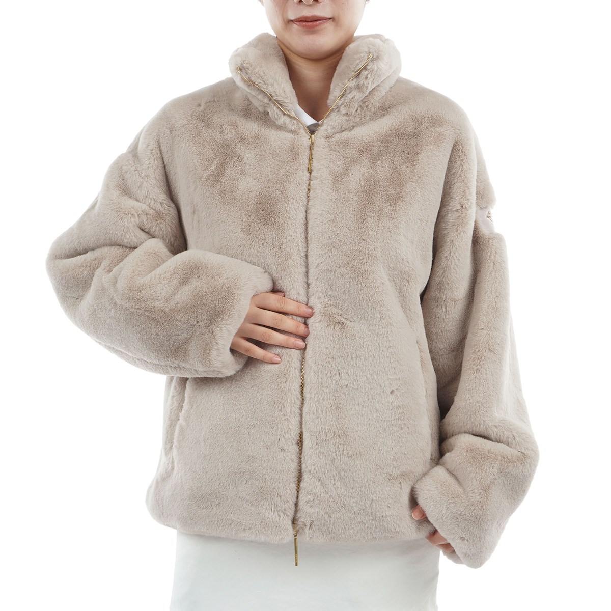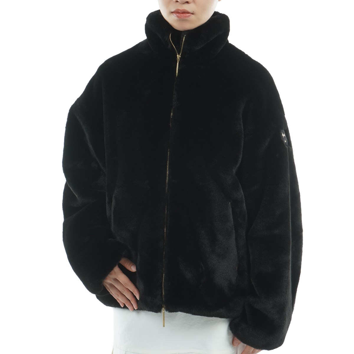 リュクスな艶を放つエコファー素材を使用したブルゾン。